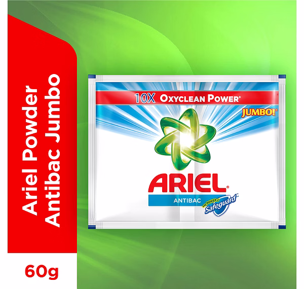 Ariel Powder Antibac combines Ariel complete superior cleaning properties to remove stains effectively with the power of Safeguard. Can be used in hand wash or in top loading washing machines.