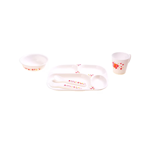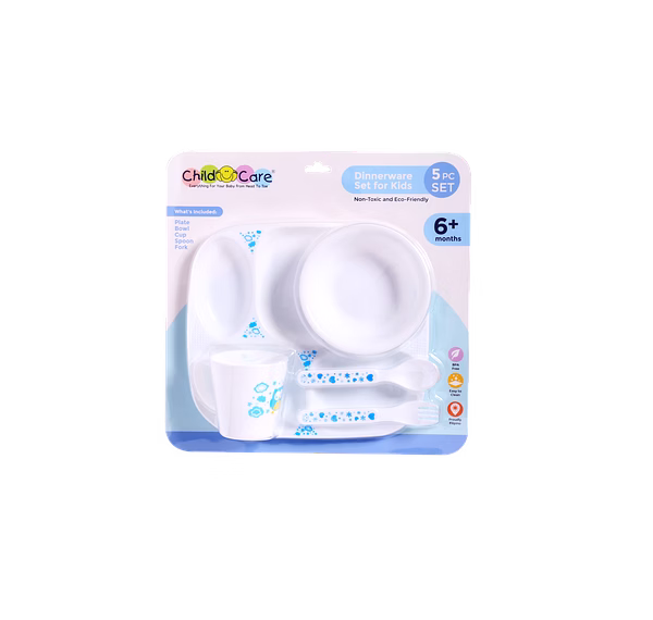 • Child Care BPA Free Dinner Set includes 1 Divided Plate, 1 Bowl, 1 Drinking Cup, 1 Set of Spoon and Fork • Recommended for ages 6+ Months and up • Feeding sets make great gifts for baptisms, baby showers, Christmas or birthdays • Proudly made in the Philippines • Most dinner sets are made with melamine, however, the Child Care dinner set uses polypropylene to ensure the feeding set will be long lasting into your child's toddler years • Cute character designs for baby to use their imagination during mealtime • Designed for little hands to encourage your baby to improve their motor functions and promote self-feeding