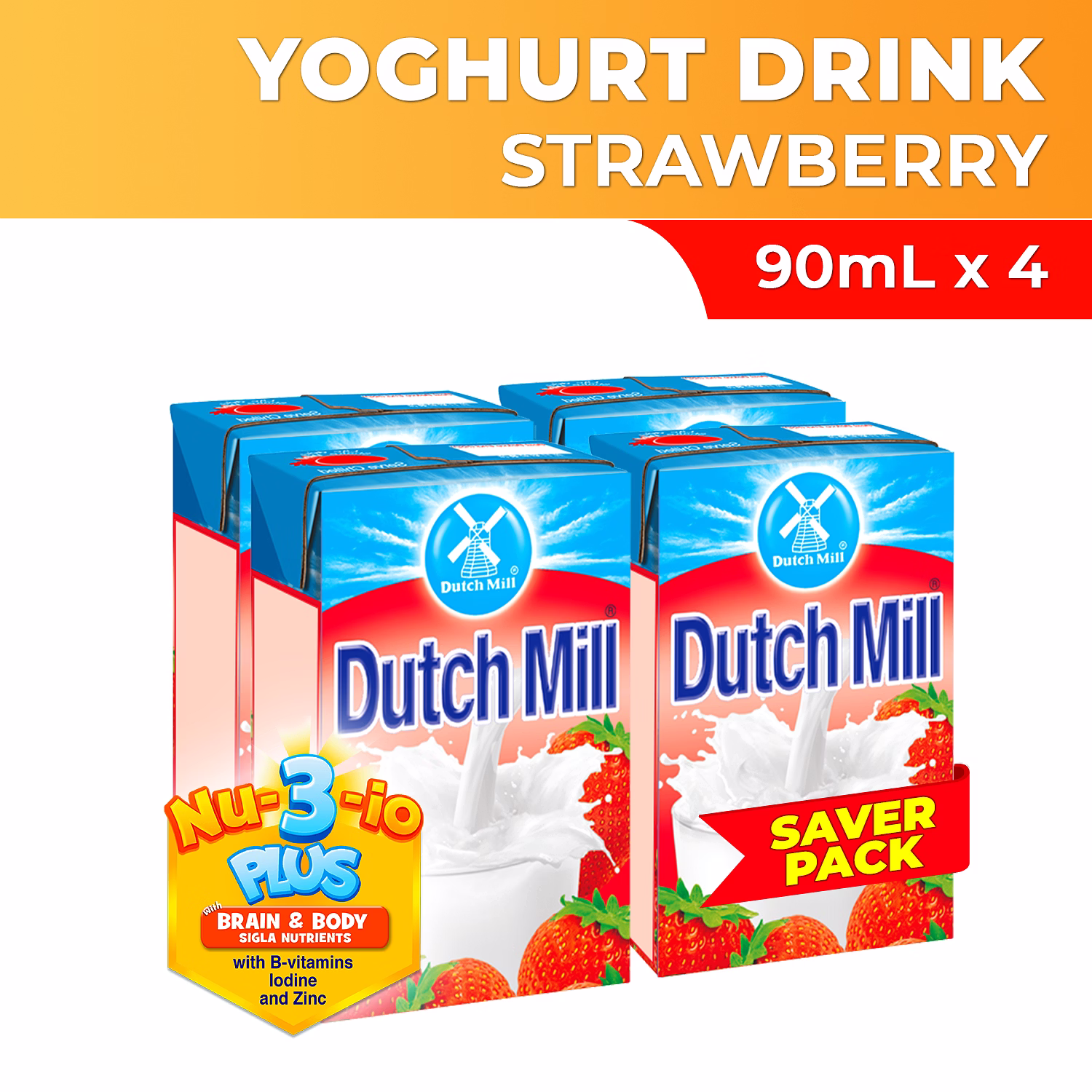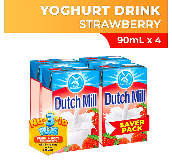 Dutch Mill Yoghurt Drink Strawberry Juice Savers Pack 90ml x 4