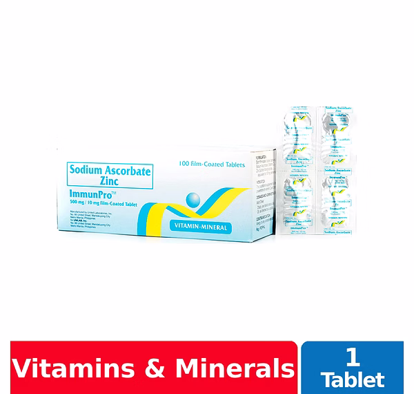Immunpro Tablet is a light peach, biconvex, elliptical, film-coated tablet, plain on both sides. The nutritional supplement is for the treatment and prevention of vitamin C and zinc deficiencies.