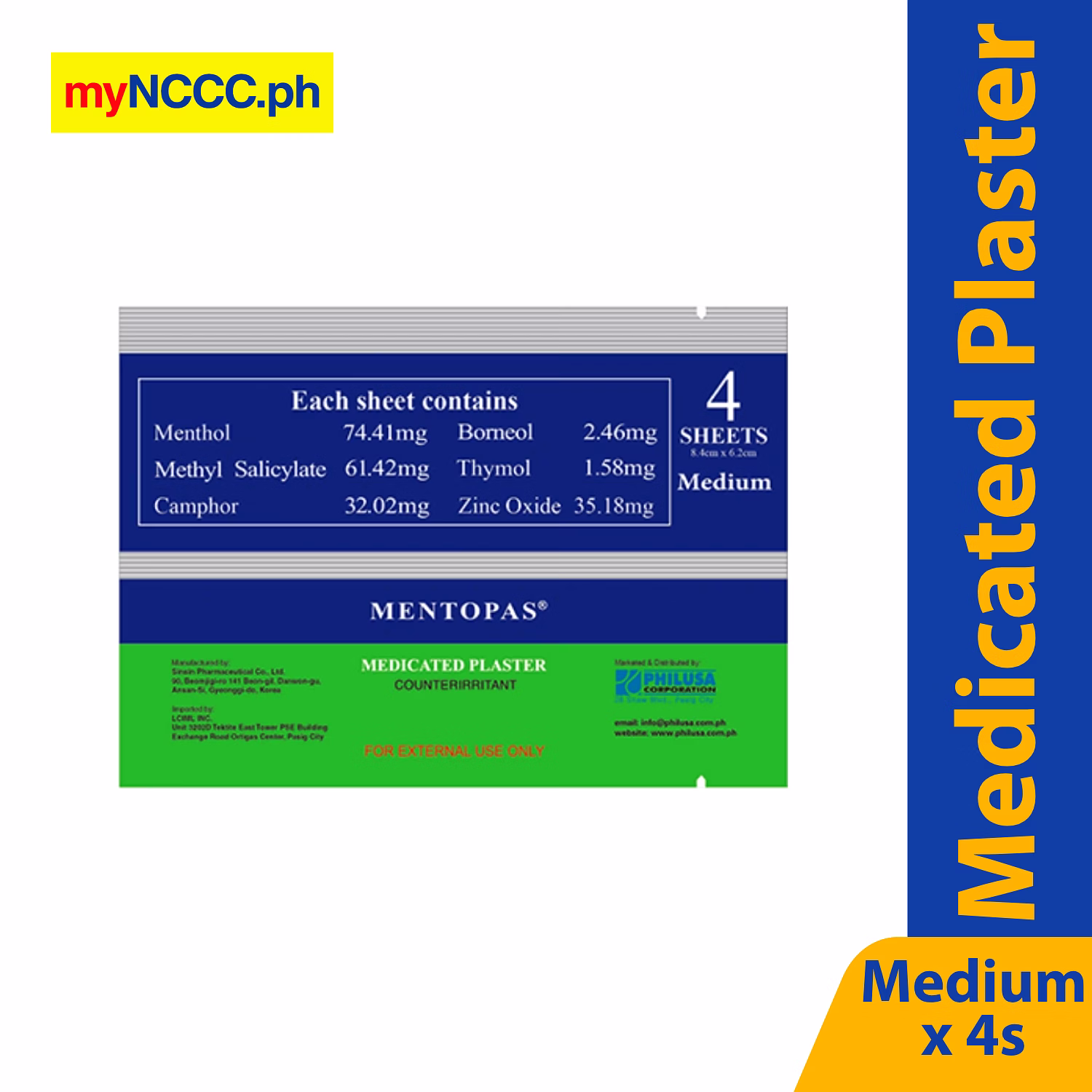 Mentopas Medicated Plaster Medium 4s