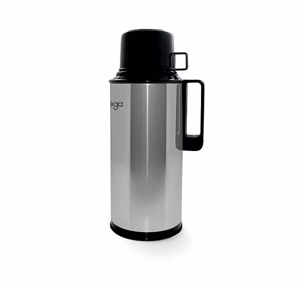 Omega Double Cup Thermal Carafe. Made of metal and polypropylene plastic. Screw twist type locking mechanism. 10-12 Hours heat retention based on proper usage.