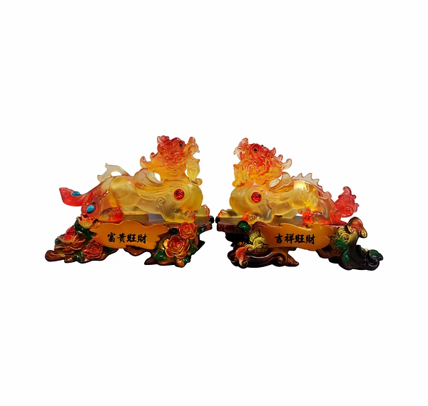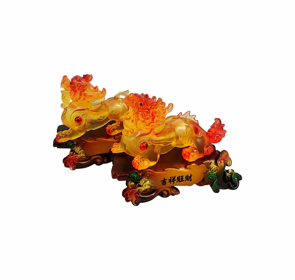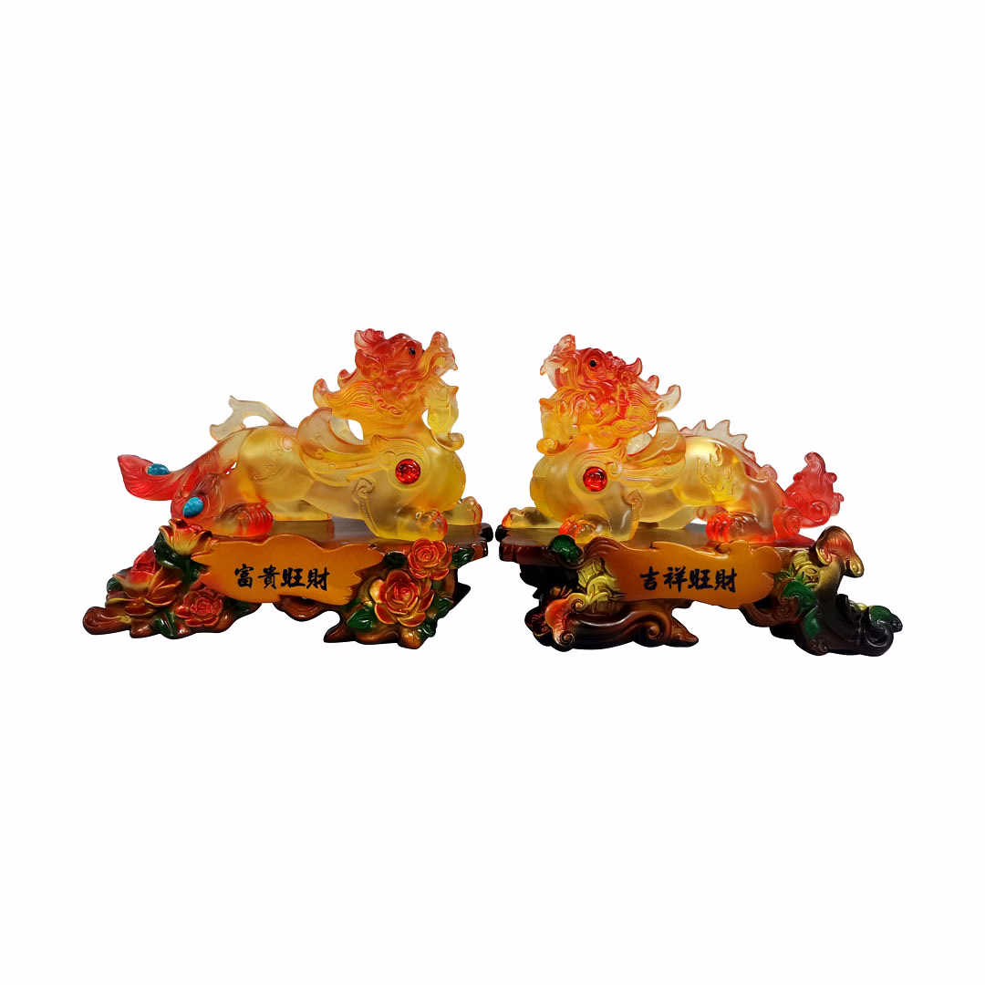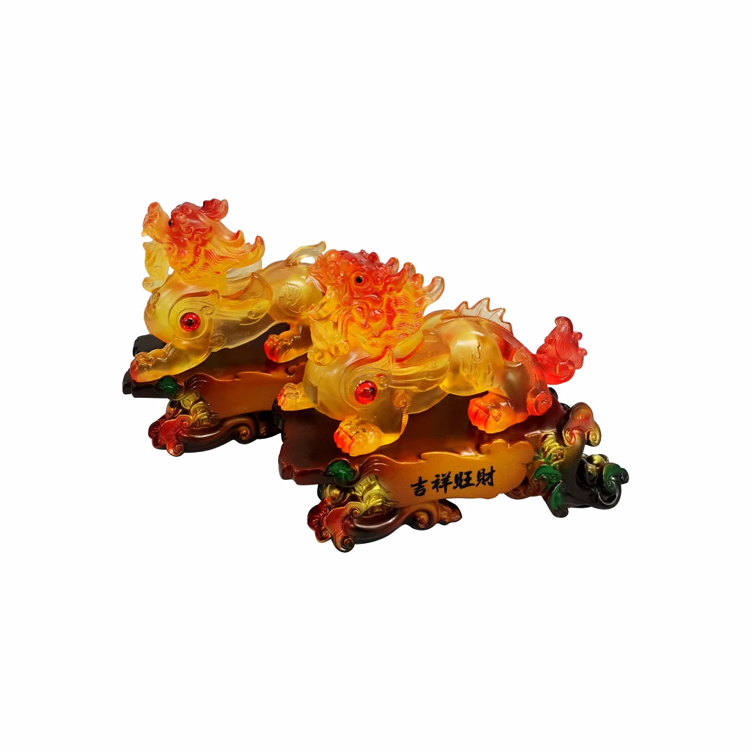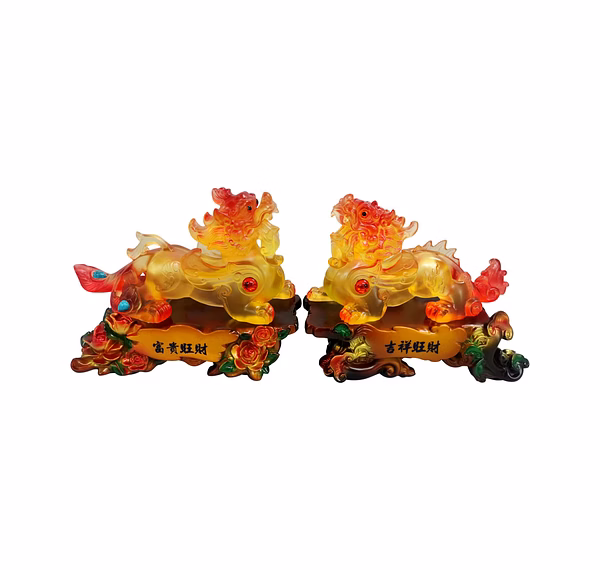 *The Pi Yao also has a very unique look, and is the combination of a variety of animals. It has the face of a lion-dog, and a single horn. It has 4 legs and hooves, as well as a tail and tiny wings. A very fascinating fact about this creature is that it does not have an anus, so that, despite its never-ending appetite for gold and silver, things go in yet never come out. *This is a unique symbolism, indicating that money will come to you but never leave. The Pi Yao can be placed singly or in a pair. When placed as a pair, the Pi Yao becomes known as Tian Lu (Heavenly Protector) and Pi Xi (Evil Dispeller). * Pi Yao is believed to offer its owner a minimum of eight blessings: Brings fortune and good tidings, Producer of good Feng Shui or Earth luck, . Attracts wealth and prosperity, Safeguards the home and the residents in it, . Exterminates evil, adversity and obstacles,Summons windfall luck, Protects from accident during travel, Appeases Tai Sui.